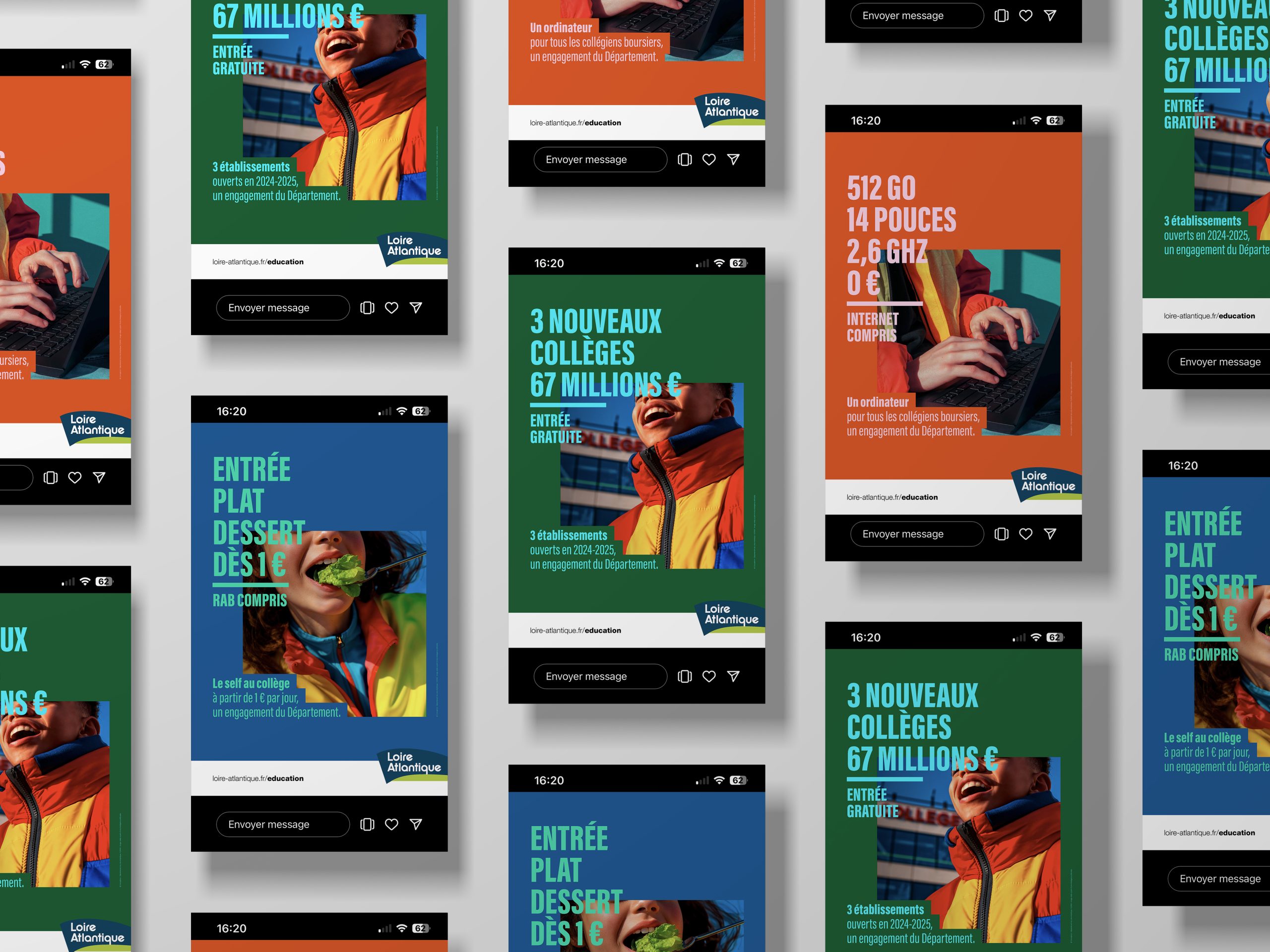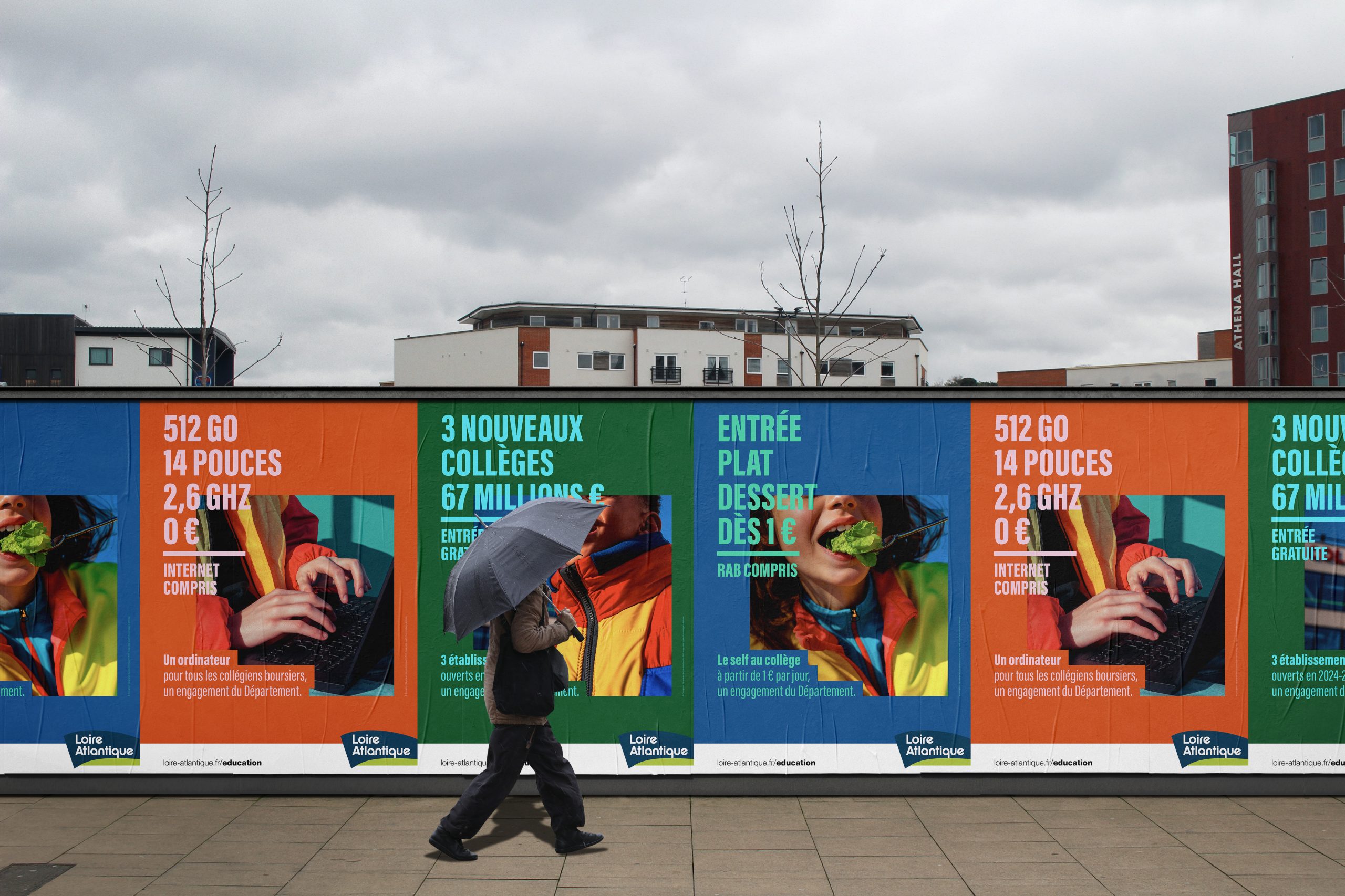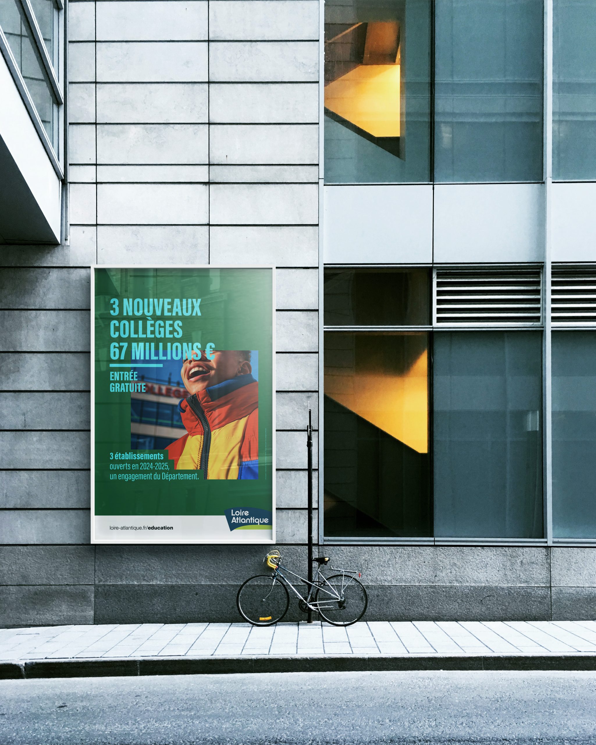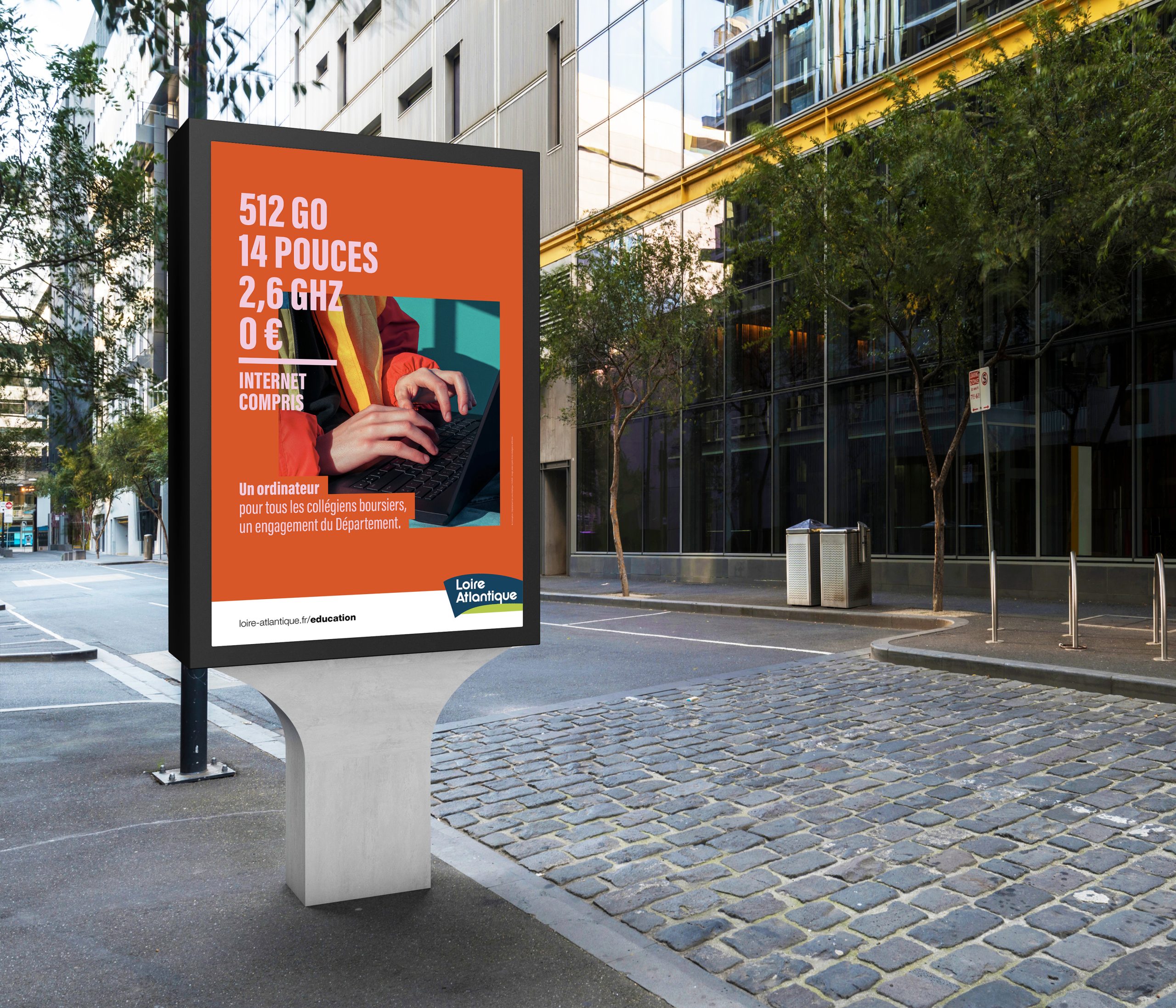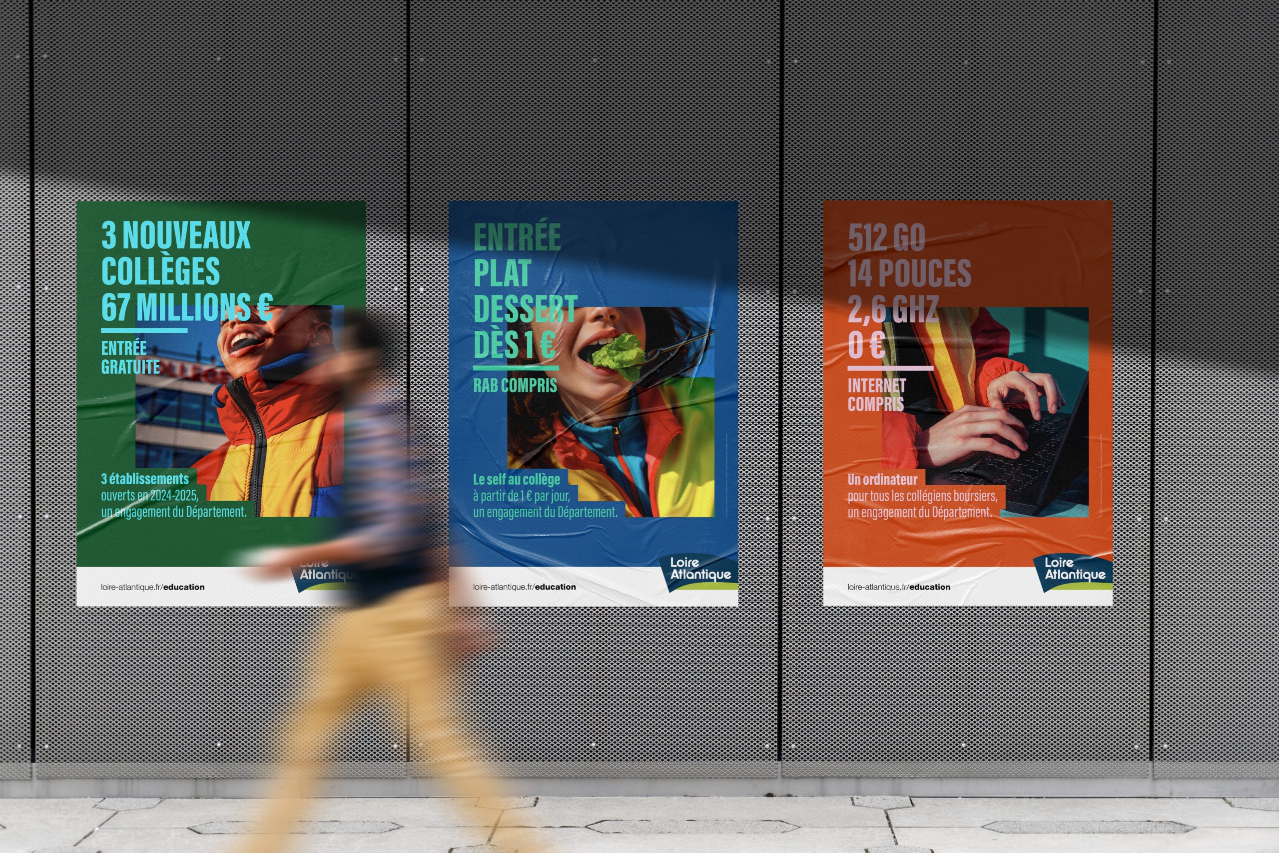 En 2024, le Département de Loire-Atlantique amorce une séquence forte autour de sa politique éducative. Portée par une volonté claire de lutter contre les inégalités sociales et scolaires, l’action publique se traduit par des engagements concrets : construction de nouveaux collèges, tarification solidaire à la cantine, dotation d’ordinateurs pour les collégiens boursiers. Dans un contexte où l’attribution de la compétence éducation au Département reste floue pour une partie du grand public, l’enjeu est double : renforcer la notoriété de son action et affirmer une posture d’acteur engagé. Le Département a confié à VUPAR la création d’une campagne différenciante et immédiatement compréhensible.
