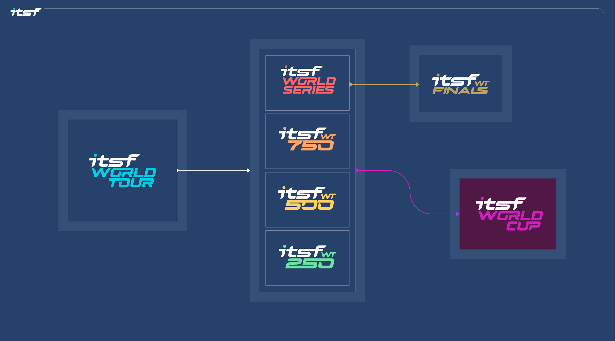 L’agence VUPAR a mis en œuvre une méthodologie débutant par un inventaire global des communications existantes et un benchmark des pratiques exemplaires dans le sport et l’entertainment. Par le biais d’échanges avec les parties prenantes à l’international, VUPAR a créé un naming structurant pour les compétitions, et un design system ambitieux et modulable. Ce dernier a été conçu pour une adoption facile par les organisateurs de tournois à travers le monde, assurant une diffusion homogène et impactante de la nouvelle identité visuelle.